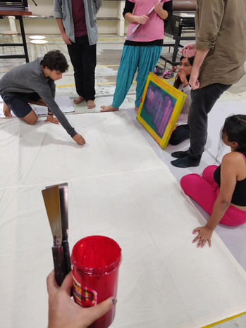 The outcome of this class was artistic expression of urban landscape through several different printing methods, combined. The Exhibition was in the Shivajinagar metro station in Bangalore, and it was a satisfying success.